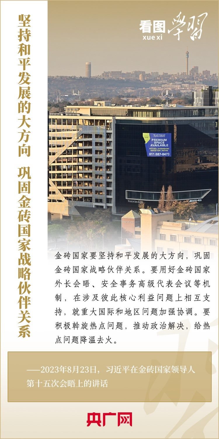 當地時間8月23日,習近平主席出席金磚國家領導人第十五次會晤并發(fā)表重要講話,強調金磚國家要秉持開放包容、合作共贏的金磚精神,以金磚責任應對共同挑戰(zhàn),以金磚擔當開創(chuàng)美好未來。一起來學習!