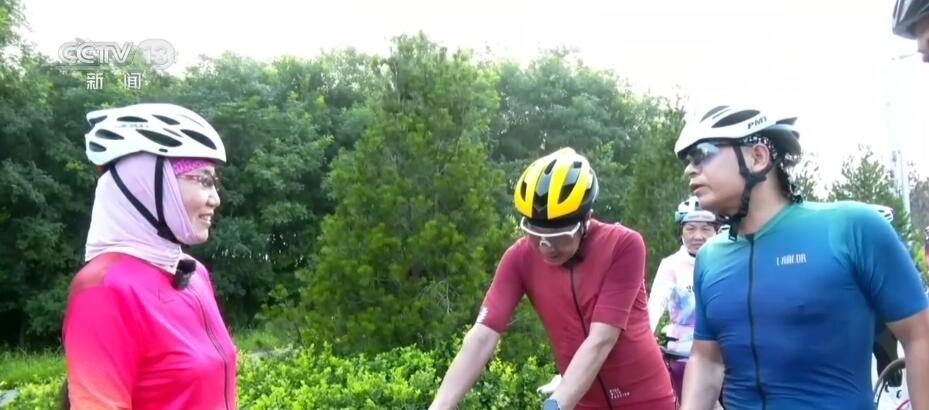 河北定州騎行愛好者 楊建茹:陸陸續(xù)續(xù)買的這衣服,我最喜歡就是這幾種牛奶絲的,透氣的,網(wǎng)眼的,穿起來特別舒服,還配著衣服買的面巾,五顏六色的面巾特別漂亮。