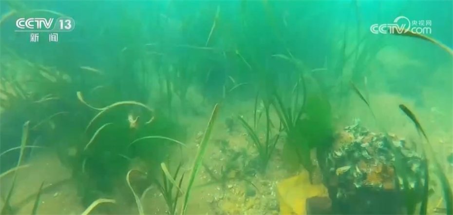 河北省近海生態(tài)修復工程技術研究中心負責人 張振海:現(xiàn)在看到的這個畫面,是我們“貝藻礁生態(tài)系統(tǒng)重構技術”的實時景象,過去海底不是這樣的,海底整個是一片荒漠化的,在貝藻礁生態(tài)系統(tǒng)創(chuàng)新以后,海藻逐漸茂盛起來,海洋生物物種增加了十幾種,海洋生物總量提高了四十倍以上。