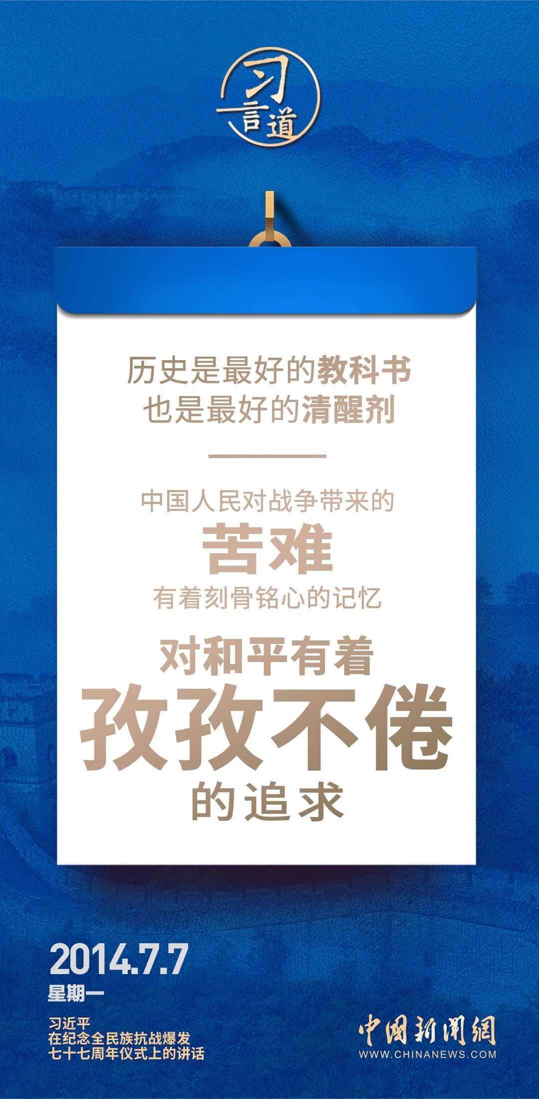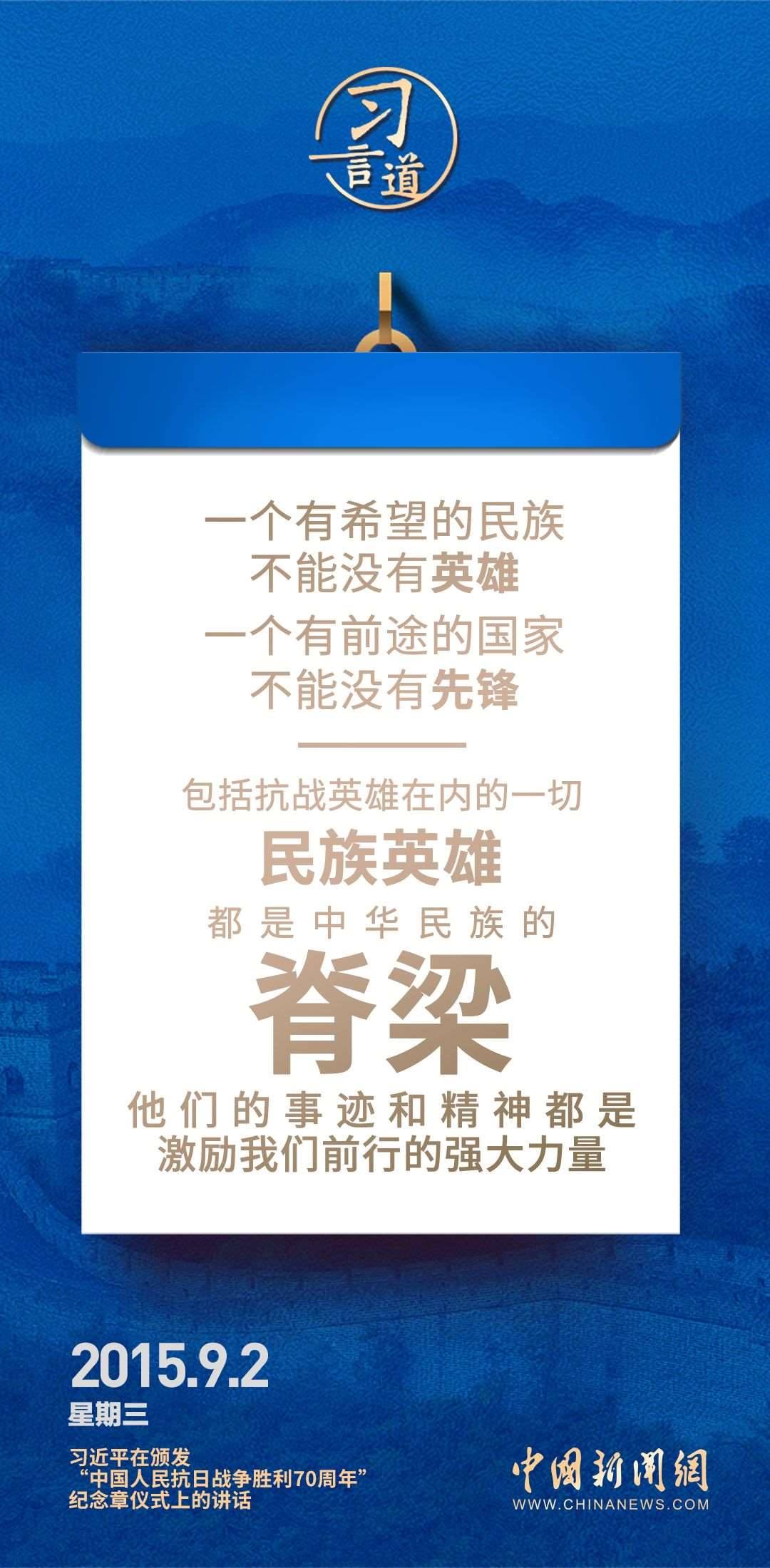 9月3日是中國人民抗日戰(zhàn)爭勝利紀念日,也是世界反法西斯戰(zhàn)爭勝利紀念日。習(xí)近平總書記關(guān)于抗戰(zhàn)的論述時刻提醒我們要銘記歷史,珍愛和平。