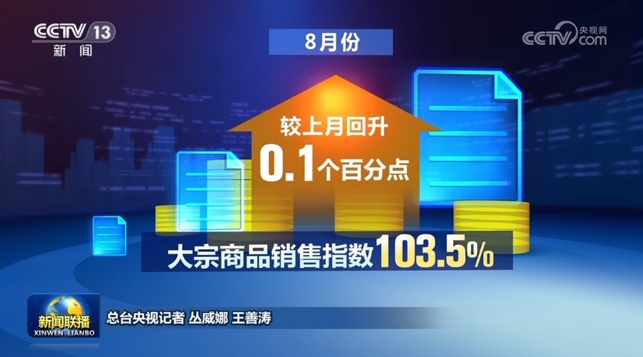 另外, 8月份大宗商品銷售指數(shù)為103.5%,較上月回升0.1個(gè)百分點(diǎn),終端市場(chǎng)及貿(mào)易商的采購意愿有所增強(qiáng),市場(chǎng)需求整體向好。