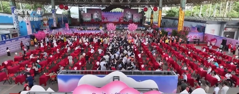 在廣東東莞,第35屆觀音山相親會吸引來自粵港澳大灣區(qū)近1000余名單身男女青年?;顒蝇F(xiàn)場通過“月老牽線”、紅娘支招、玫瑰傳情、宋風(fēng)漢式婚禮展演等互動環(huán)節(jié)為廣大單身男女青年?duì)烤€搭橋,將浪漫指數(shù)拉滿。此外,宋風(fēng)漢式婚禮展演的親迎之禮、卻扇之禮等宋代婚禮經(jīng)典環(huán)節(jié)一一呈現(xiàn),沉浸式體驗(yàn)千年前古人的浪漫。