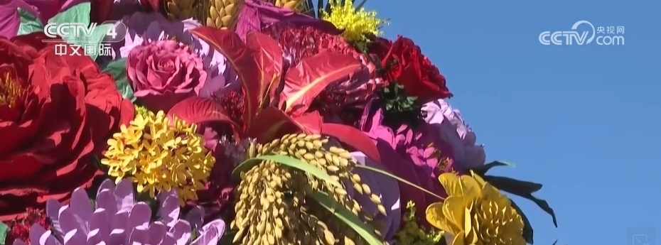 五湖四海的游客來到天安門廣場拍照留念,特別是廣場中央喜慶熱烈的巨型花籃,更成為了最熱門的留影點(diǎn)。2023年,廣場花籃首次裝入象征豐收的五谷元素,體現(xiàn)花團(tuán)錦簇、五谷豐登,表達(dá)了全國各族人民,在同心共筑中國夢的偉大征途中開創(chuàng)更加美好的未來。