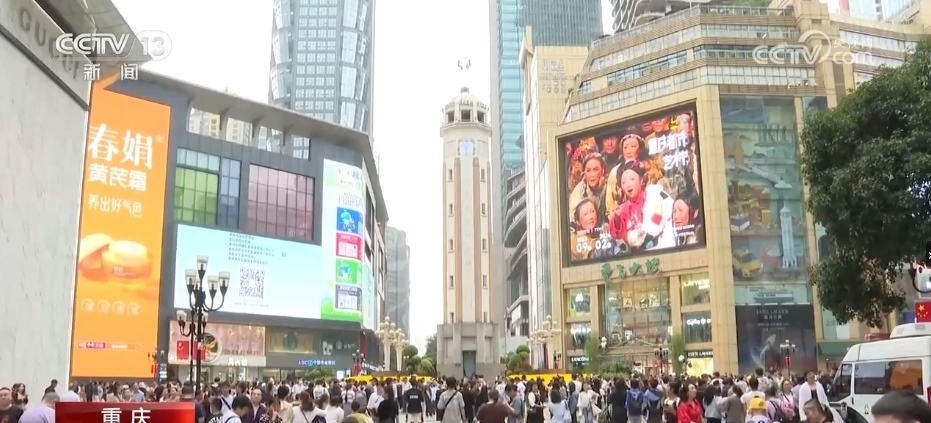 中秋、國慶假期前三天,重慶解放碑商圈消費旺盛,解放碑商圈累計客流量和消費數(shù)據(jù)同比增長均超過20%。渝中區(qū)抽樣21家大中型商場、購物中心等商業(yè)載體銷售總額超過1.2億元。重慶中心城區(qū)地處長江、嘉陵江交匯,這個假期,許多游客選擇乘坐游船欣賞山城兩江四岸的璀璨夜景,假期前三天,兩江游發(fā)送游客共計約65000人。