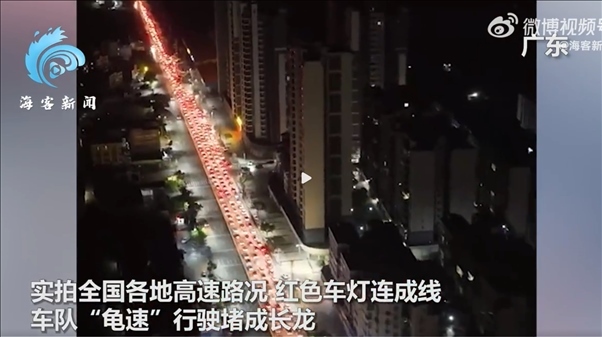 據(jù)??托侣劰俜轿⒉?,10月4日,中秋國慶假期進(jìn)入第6天,多地陸續(xù)迎來返程高峰。實拍全國各地高速路況,紅色車燈連成線,車隊“龜速”行駛堵成長龍。有網(wǎng)友曬出高速路況畫面表示“特意提前三天回去,沒想到又堵路上了。”、“帶回的特產(chǎn)都要在路上吃完了”。