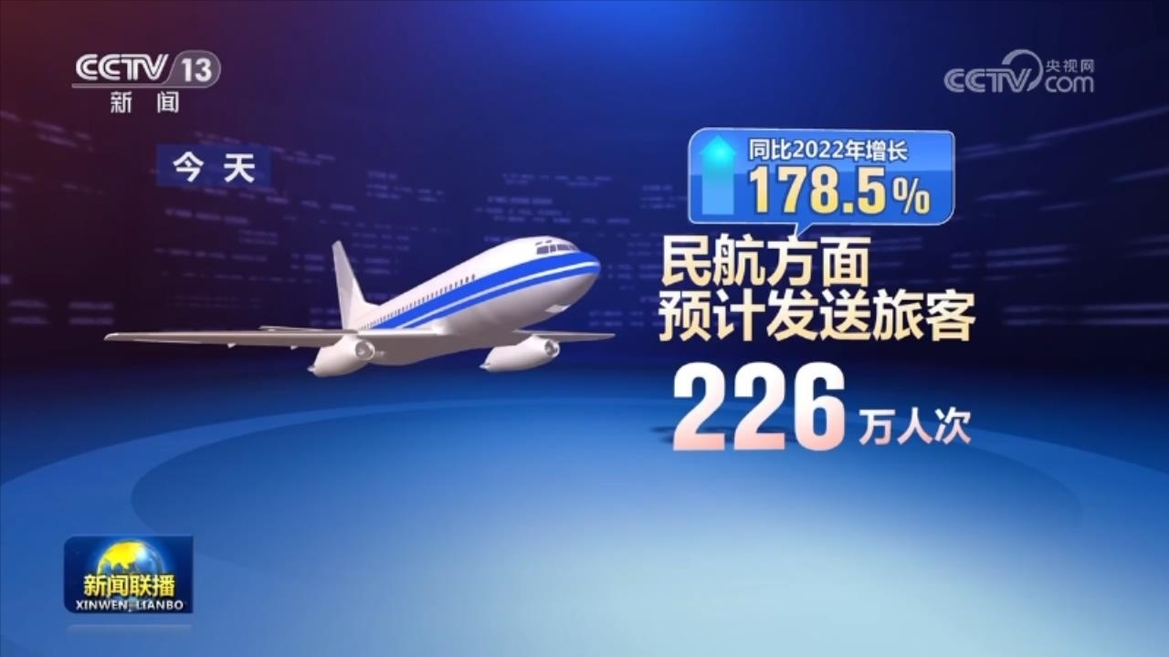 民航方面,今天預(yù)計(jì)發(fā)送旅客226萬(wàn)人次,同比2022年增長(zhǎng)178.5%。全國(guó)水路預(yù)計(jì)發(fā)送旅客115萬(wàn)人次,同比2022年增長(zhǎng)164.62%。