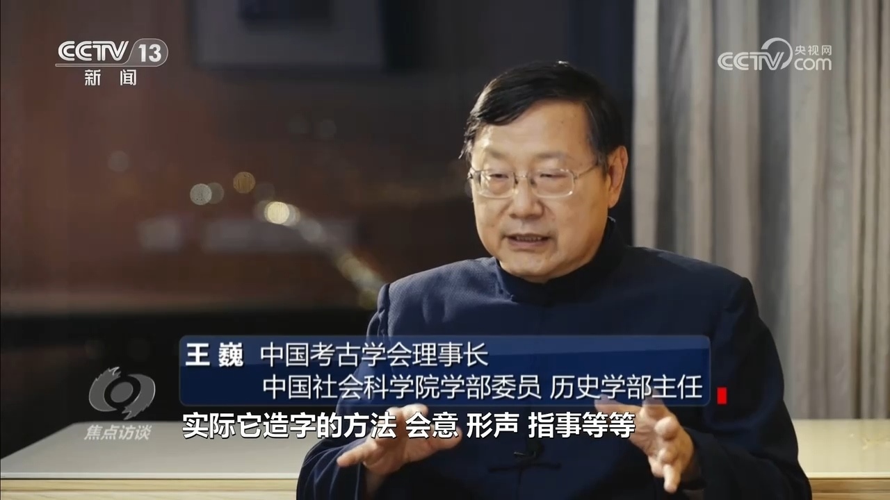 中國(guó)考古學(xué)會(huì)理事長(zhǎng)、中國(guó)社會(huì)科學(xué)院學(xué)部委員、歷史學(xué)部主任王巍:“它有豐富的記載功能,商代的甲骨文是非常成熟的文字體系,它的造字方法、會(huì)意、形聲、指事等,它的造字方法已經(jīng)非常成熟了。正是因?yàn)橛袧h字,我們可以知道各個(gè)時(shí)代的政治、經(jīng)濟(jì)、文化、社會(huì)的記錄。”