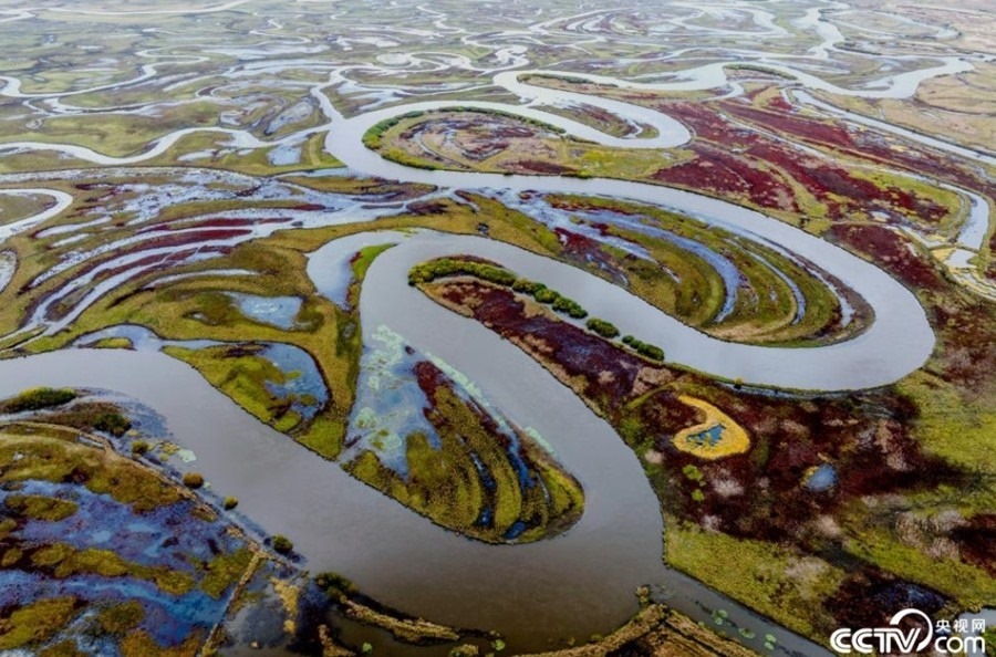 黑龍江省雙鴨山市饒河縣境內(nèi)的撓力河濕地水草豐美,色彩斑斕,一派生態(tài)之美的迷人景象。
