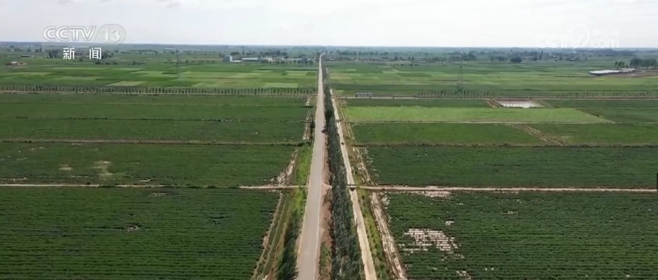 2017年,巴彥淖爾市規(guī)劃了484萬(wàn)畝鹽堿化耕地“改鹽增草(飼)興牧”示范工程,拉開了全市改良鹽堿地的序幕。通過(guò)大規(guī)模土地整理,愛(ài)國(guó)村零散的土地被整合了起來(lái)?,F(xiàn)在行走在愛(ài)國(guó)村的田間地頭,遠(yuǎn)看路相連、渠相通、溝配套。近看有新的發(fā)現(xiàn),在地下40公分的位置,鋪設(shè)了一層秸稈,鹽隨水來(lái)、隨水去。在水分向上蒸發(fā)的同時(shí),能保證鹽分被阻攔在秸稈下面,這個(gè)被稱為“上膜下秸”技術(shù)。而對(duì)于重度鹽堿地,當(dāng)?shù)卦诘叵?.8米的位置,每隔50公分鋪設(shè)了一些排水管道,能保證地下的水分隨時(shí)通過(guò)這些管道流到排水井里,最大程度地讓作物不受傷害,耕地質(zhì)量提高1—2個(gè)等級(jí)。