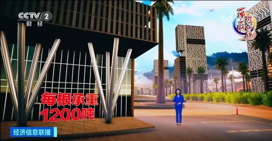 包括標志塔在內(nèi),中國企業(yè)在中央商務(wù)區(qū)共承接了20個高層建筑單體及配套市政工程。20棟高樓間,我們還能看見不少這樣的“樹形柱”,四根向上斜伸的柱子,像一個倒立的金字塔。我身邊就是這種樹形柱,每根柱子承受1200噸重量,相當(dāng)于在上面站立150頭成年大象,受力卻只集中于底部一點,中國團隊歷經(jīng)3個多月的精密計算與人工調(diào)試,讓這個專屬于埃及的設(shè)計成功澆筑,用堅實的技術(shù)托起了這座未來之城。