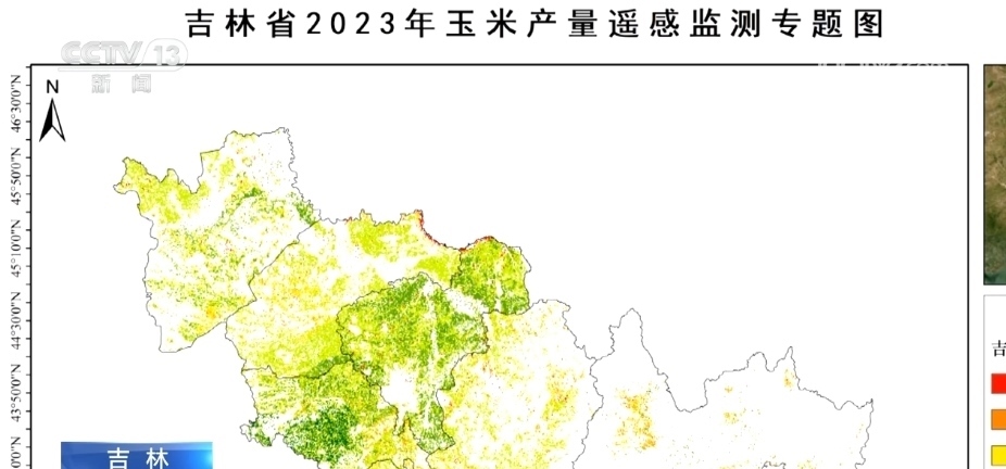 這張就是吉林省玉米產量的初步估產圖。作為本年度吉林省農作物監(jiān)測的重要成果之一,它清晰地反映出玉米在吉林省的分布情況。