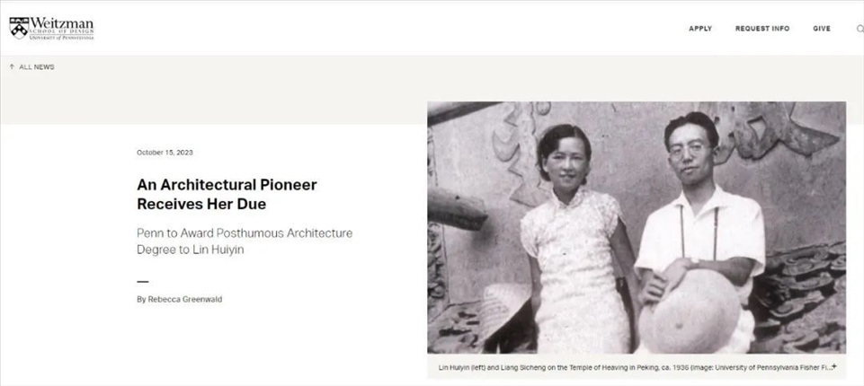 ·美國(guó)賓夕法尼亞大學(xué)宣布將追授林徽因建筑學(xué)學(xué)位。