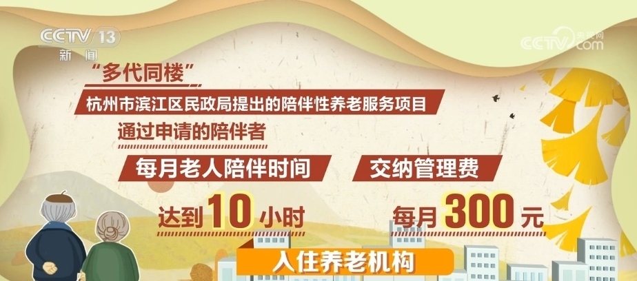 “多代同樓”是由浙江省杭州市濱江區(qū)民政局提出的陪伴性養(yǎng)老服務(wù)項(xiàng)目。通過(guò)申請(qǐng)的陪伴者每月只需達(dá)到10小時(shí)的老人陪伴時(shí)間,并交納每月300元的管理費(fèi),就可以入住這家養(yǎng)老機(jī)構(gòu)。