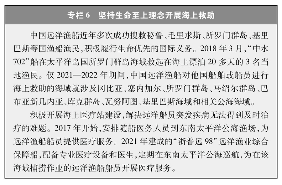 中國持續(xù)提升遠洋漁業(yè)基礎(chǔ)設(shè)施現(xiàn)代化水平,著眼于安全、環(huán)保、可持續(xù)和勞工保護等目標,在控制遠洋漁船規(guī)模的同時,不斷改善漁船安全和船員生活環(huán)境。