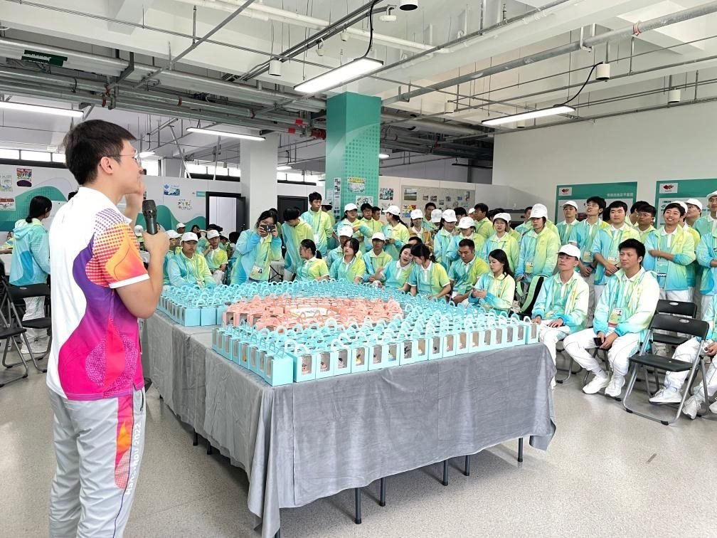 “我們早上五點(diǎn)從學(xué)校出發(fā),晚上七點(diǎn)左右從場館離開。這段時間雖然辛苦,卻很有意義,也結(jié)識到了不少朋友?!滨U明聰擦擦頭上的汗珠笑著說。