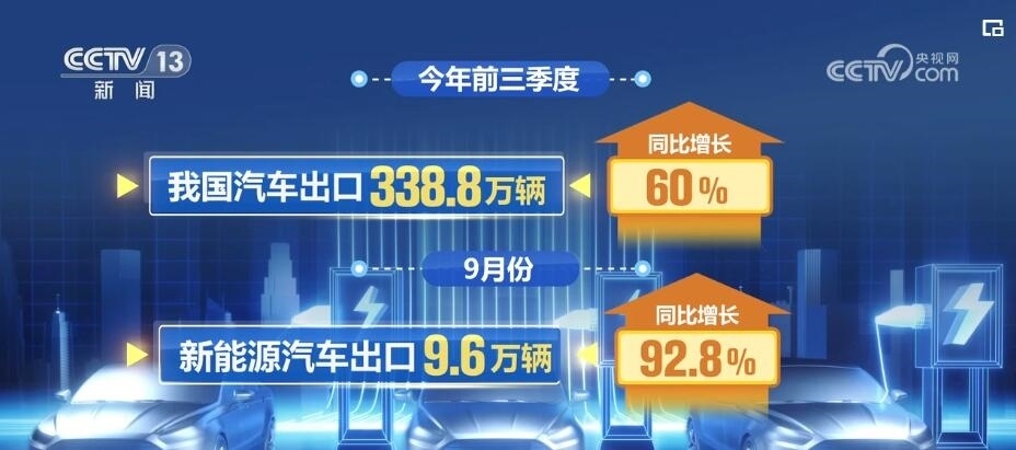 今年前三季度,我國(guó)汽車出口338.8萬(wàn)輛,同比增長(zhǎng)60%。這其中,新能源汽車的出口增幅十分強(qiáng)勁。其中9月份,新能源汽車出口9.6萬(wàn)輛,同比增長(zhǎng)92.8%。在不少國(guó)家,中國(guó)的新能源汽車已經(jīng)成為當(dāng)?shù)匦履茉雌囦N量的總冠軍。分析背后的原因,“固本興新”是關(guān)鍵詞,新能源汽車正為中國(guó)外貿(mào)注入新的動(dòng)能。據(jù)中國(guó)汽車工業(yè)協(xié)會(huì)的預(yù)計(jì),2023年汽車出口將超過(guò)400萬(wàn)輛,其中新能源汽車將超過(guò)100萬(wàn)輛。