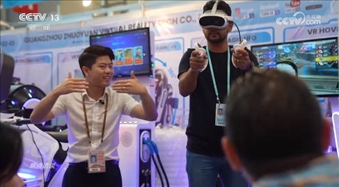 在這家企業(yè)的展位上,一款創(chuàng)新的VR平衡車以獨特設(shè)計和高交互性受到眾多采購商的青睞。等待體驗的人群排起了長隊。