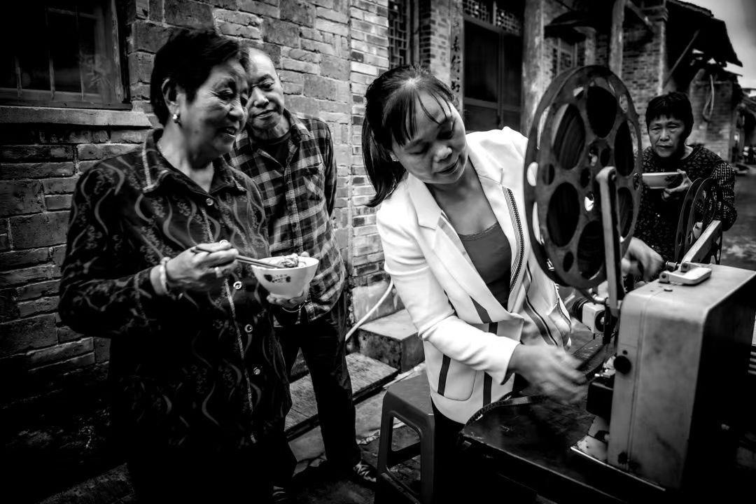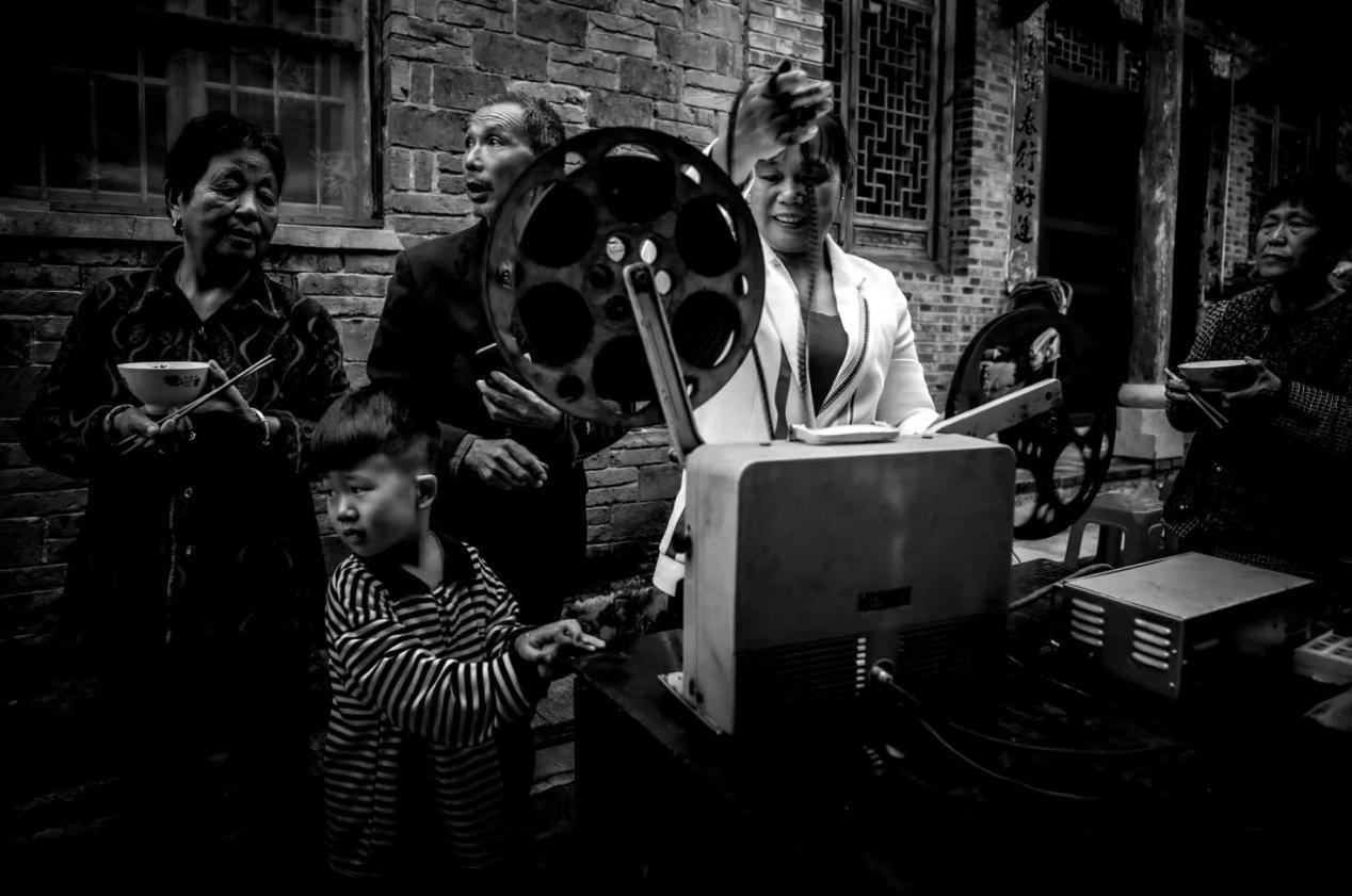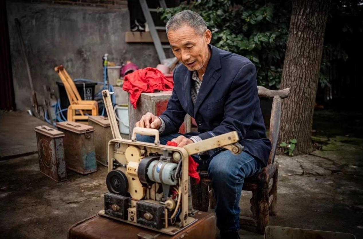1983年,鄉(xiāng)里成立了電影放映隊,曹毅成了隊長,還參加了電影培訓(xùn)班,扎扎實實地學(xué)了放映技術(shù)、電工等好多課程,成了專業(yè)的放映員。那時片源少,一張片子各個鄉(xiāng)排期輪流放映,讓曹毅最開心的事,就是坐上幾個小時的公交車去縣里拿膠片。有時揣著膠片回來的路上就忍不住想樂,哪回放新電影都像打仗一樣,人山人海,得防著別碰壞了放映機,還得留心會有哪個村連夜來搶放映機?!翱傆幸蝗f人,銀幕前后都是人,背面都有人看。在稻田里面把那稻子割完了以后,電影就在稻場里面放,不然地方不夠大。”空氣中飄著稻谷的香味,不少人會盤腿坐在地上,扎扎實實看完一部電影。