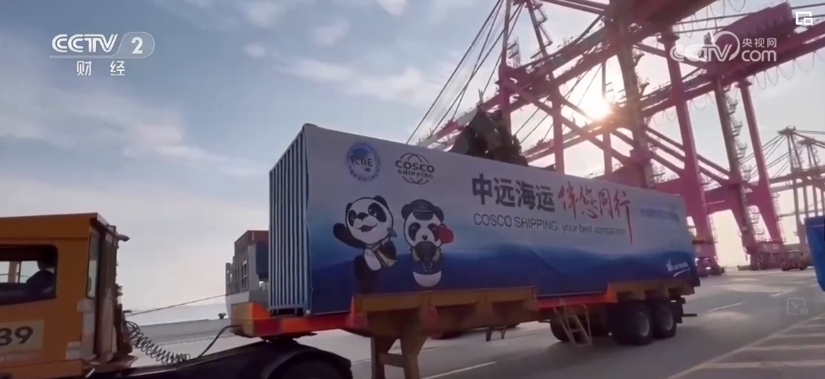 央視財(cái)經(jīng)記者 金荷淼:進(jìn)博會的吉祥物“進(jìn)寶”戴著的這條圍巾是黃藍(lán)相間的,黃色代表“絲綢之路經(jīng)濟(jì)帶”,藍(lán)色代表“21世紀(jì)海上絲綢之路”,這恰恰體現(xiàn)著進(jìn)博會與 “一帶一路”的密切聯(lián)系。今年“進(jìn)博號”中歐班列共發(fā)行3列,承運(yùn)貨值超過3.5億元人民幣,較上屆進(jìn)博會增長近三倍。浦東機(jī)場貨運(yùn)站保障參會展品物資重量超20噸,較上屆進(jìn)博會增長超五成。正是這一場場跨越萬里的接力賽,搖響了新時(shí)代國際貿(mào)易的“駝鈴”。