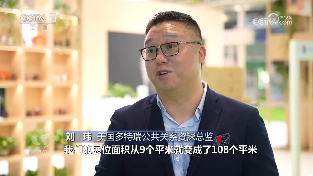 美國(guó)多特瑞公共關(guān)系資深總監(jiān)劉瑋:“因?yàn)橛辛说谝粚眠M(jìn)博會(huì),給了公司非常大的信心,所以從第二屆開(kāi)始,我們的展位面積從9平米變成了108平米,第三屆的時(shí)候我們又拓展到了150平米,直到現(xiàn)在我們的整個(gè)面積達(dá)到了200平米,所以面積的增長(zhǎng)帶來(lái)了非常好的收益?!?/p>