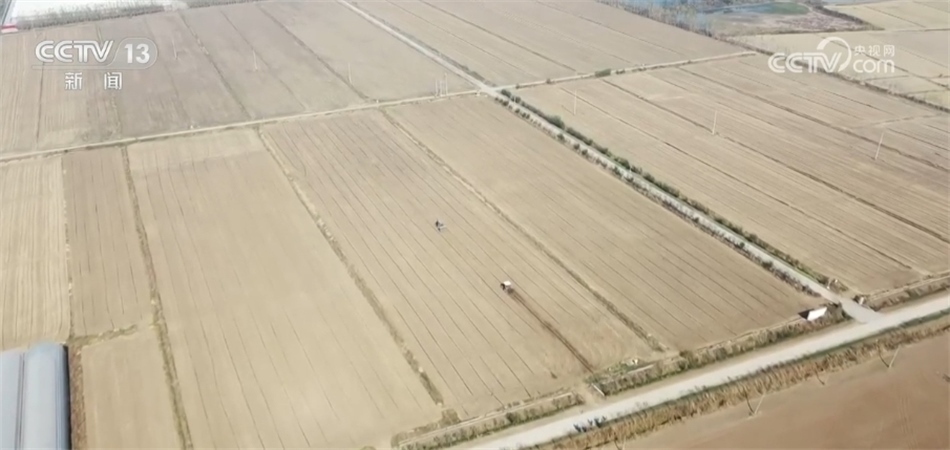 在山東臨沂郯城縣歸昌農(nóng)場(chǎng)的冬小麥種植田里,拖拉機(jī)、播種機(jī)等農(nóng)業(yè)機(jī)械在田間作業(yè),一粒粒麥種隨著播種機(jī)的上下翻動(dòng)被種進(jìn)土地里。