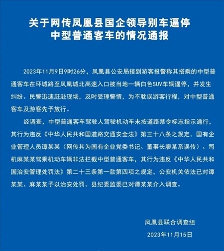 ·官方通報(bào)網(wǎng)傳國(guó)企領(lǐng)導(dǎo)別停客車:客車違規(guī)行駛,被國(guó)企員工非法攔截。