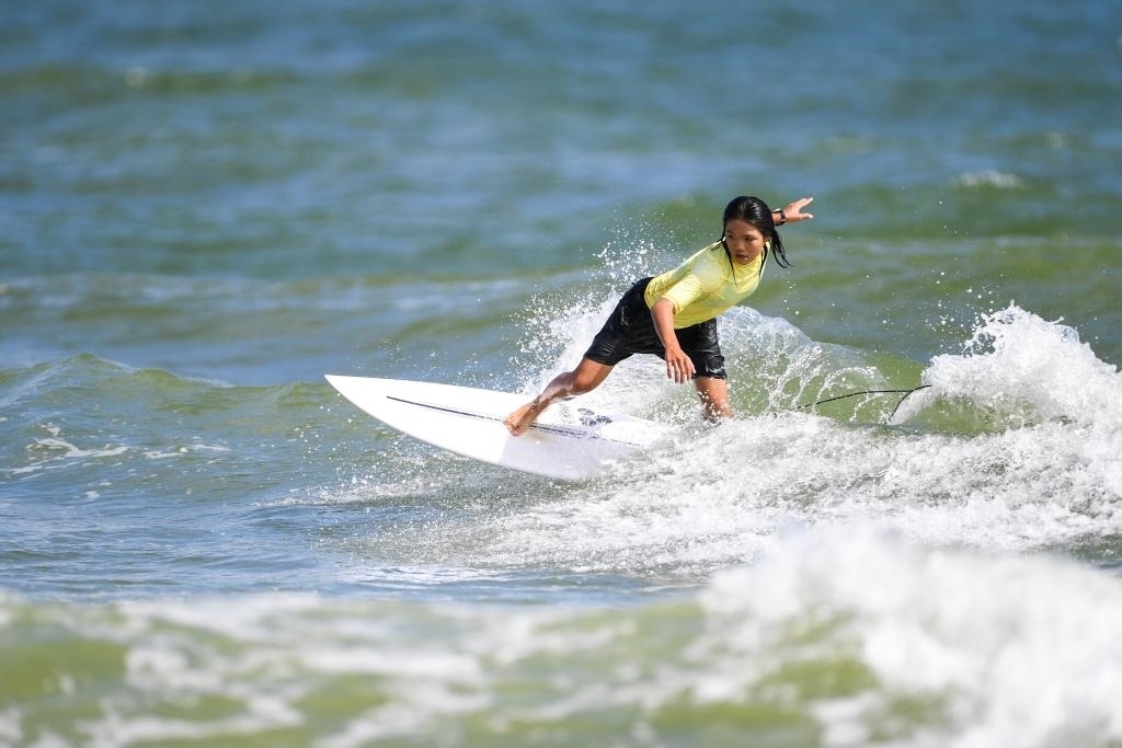 7月12日,第一屆全國學(xué)生(青年)運(yùn)動(dòng)會(huì)沖浪項(xiàng)目女子短板決賽在廣西北海市舉行。新華社記者 曹祎銘 攝