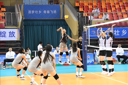 11月14日,廣西女排和吉林女排在比賽中。賽事組委會(huì)供圖