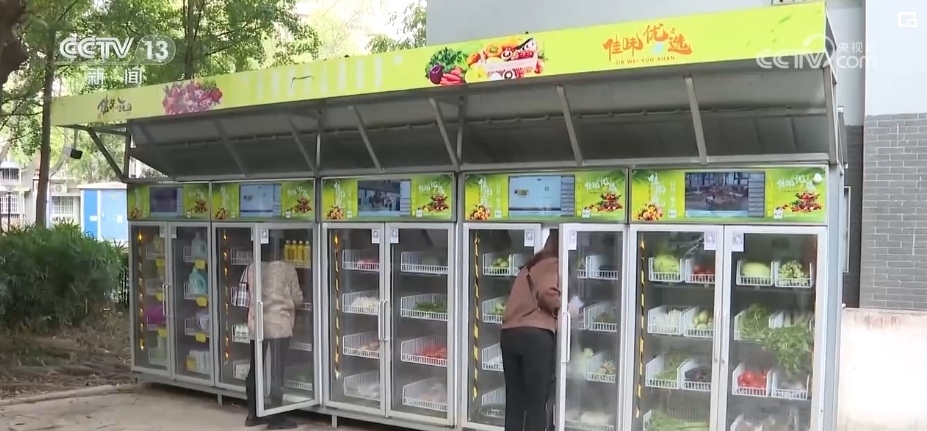 在四川中江縣城的這個小區(qū)門口,記者看到一排無人售貨柜擺放在院落一角。售貨柜里,擺放著20余種蔬菜和副食品。一旁的生鮮自提柜里,則提供冷鏈產(chǎn)品線上下單、線下自提服務(wù)。這種24小時的便利提貨柜,實現(xiàn)了消費者消費升級的需求。