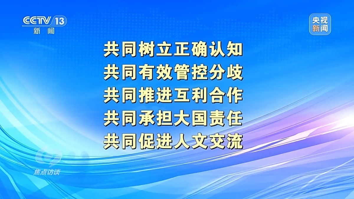 習(xí)近平主席深刻指出,中美是選擇加強團結(jié)合作,還是挑動陣營對抗,將決定人類前途和地球未來。美方必須認(rèn)真思考中美兩國到底是伙伴還是對手這個根本性問題,做出正確歷史選擇。習(xí)近平主席指出,這次舊金山會晤,雙方應(yīng)設(shè)立新的愿景:一是共同樹立正確認(rèn)知;二是共同有效管控分歧;三是共同推進互利合作;四是共同承擔(dān)大國責(zé)任;五是共同促進人文交流。這“五個共同”為中美關(guān)系澆筑了五根支柱,開辟了面向未來的“舊金山愿景”。