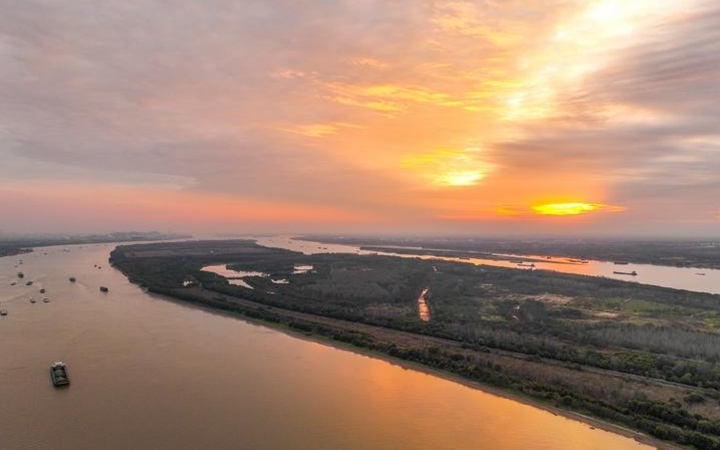 長(zhǎng)江一路浩蕩萬里,奔流入海前在江蘇張家港拐了最后一道彎。