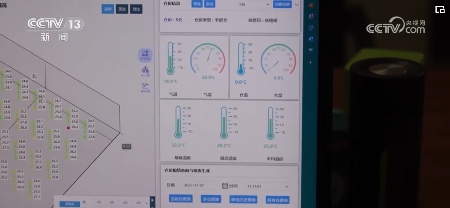 在國(guó)家“糧食綠色倉(cāng)儲(chǔ)提升行動(dòng)”的政策支持下,水稻主產(chǎn)區(qū)江西從2020年至今統(tǒng)籌資金52億元,提升糧食產(chǎn)后服務(wù)功能,電子測(cè)溫、機(jī)械通風(fēng)、內(nèi)環(huán)流控溫等新科技的綜合應(yīng)用,讓糧食住進(jìn)了“智能空調(diào)房”。