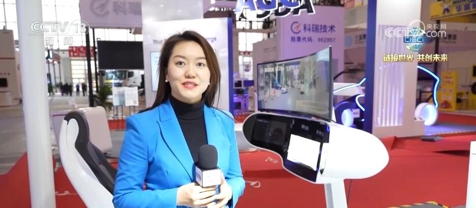 在本屆鏈博會(huì)上,智能汽車(chē)鏈的中游包括智能駕駛解決方案和動(dòng)力電池解決方案等也得到展示。在我身旁的是這家展商帶來(lái)的高階智能駕駛解決方案,我們一起去體驗(yàn)一下。大家可以看到,上面這塊大屏幕是實(shí)時(shí)的路況,左側(cè)屏幕實(shí)際上是計(jì)算機(jī)算法看到的現(xiàn)在道路路況,右手邊是汽車(chē)和其他汽車(chē)交互的情況,主要用于規(guī)劃路線。這款高階智能駕駛解決方案將于今年四季度進(jìn)行量產(chǎn)。有了它的輔助,未來(lái),出行將會(huì)更加安全和輕松。