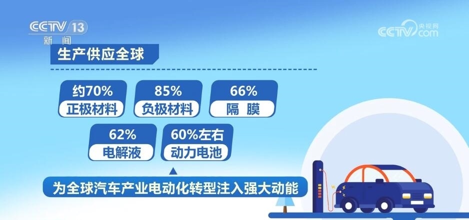 工業(yè)和信息化部表示,我國已建立了結(jié)構(gòu)完整、有機(jī)協(xié)同的新能源汽車產(chǎn)業(yè)鏈、供應(yīng)鏈體系,涵蓋基礎(chǔ)材料、零部件、整車、制造裝備等全鏈條,生產(chǎn)供應(yīng)了全球約70%的正極材料、85%的負(fù)極材料、66%的隔膜、62%的電解液以及60%左右的動力電池,為全球汽車產(chǎn)業(yè)電動化轉(zhuǎn)型注入了強(qiáng)大動能。