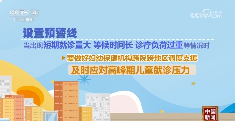 設(shè)置預(yù)警線,當(dāng)出現(xiàn)短期就診量大、等候時(shí)間長、診療負(fù)荷過重等情況時(shí),要做好婦幼保健機(jī)構(gòu)跨院跨地區(qū)調(diào)度支援,及時(shí)應(yīng)對高峰期兒童就診壓力。