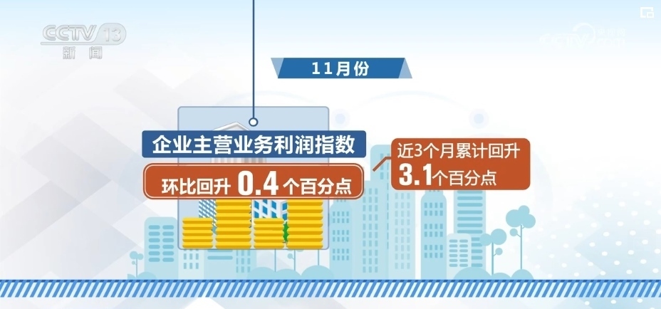 從分項(xiàng)指數(shù)來看,11月份,企業(yè)主營(yíng)業(yè)務(wù)利潤(rùn)指數(shù)環(huán)比回升0.4個(gè)百分點(diǎn),近3個(gè)月累計(jì)回升3.1個(gè)百分點(diǎn)。