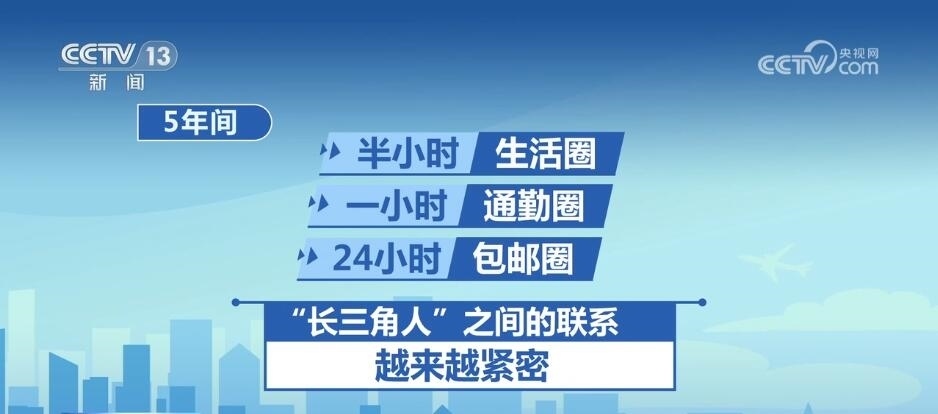 5年間,長三角半小時生活圈、一小時通勤圈、24小時包郵圈,“長三角人”之間的聯(lián)系,越來越緊密。