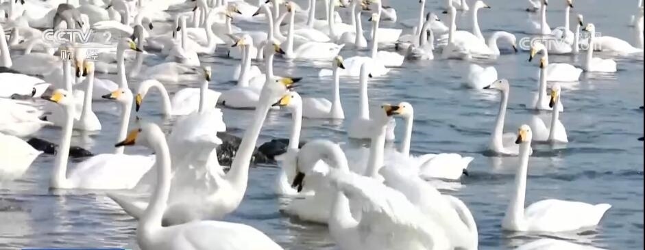 總臺記者 柳棟:我所在的位置是山東榮成大天鵝國家級自然保護(hù)區(qū),多年來這里形成了煙墩角、天鵝湖和櫻花湖三處大天鵝的集中區(qū)。今年遷徙的1萬多只大天鵝,目前九成以上已經(jīng)抵達(dá)這里,僅我所在的保護(hù)區(qū)范圍里就有超過6000多只。這里的工作人員告訴我,這些大天鵝是從3000多公里外的西伯利亞等地區(qū)長途飛行45天左右才能抵達(dá)的。飛抵后,大天鵝會在這里越冬,直到來年三四月份才會離開。因此,這里的大天鵝不再忙于練習(xí)飛翔和補充體力,而是從容不迫地開啟了度假模式,游客們也可以近距離與它們進(jìn)行互動。