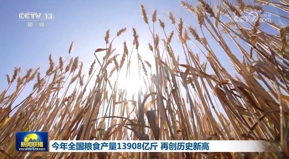 今年全國(guó)糧食產(chǎn)量13908億斤 再創(chuàng)歷史新高