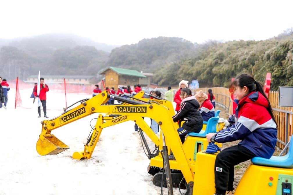 重慶市南川區(qū)金佛山滑雪場里,學生們正在參加冰雪研學活動。(甘昊旻 攝)