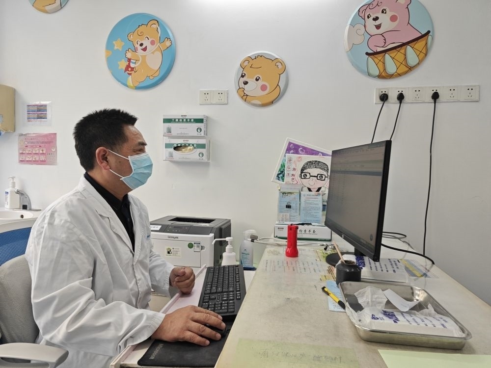 長春市兒童醫(yī)院中西醫(yī)結(jié)合科主任薛斌在舒蘭市人民醫(yī)院兒科療區(qū)查房。受訪對象供圖