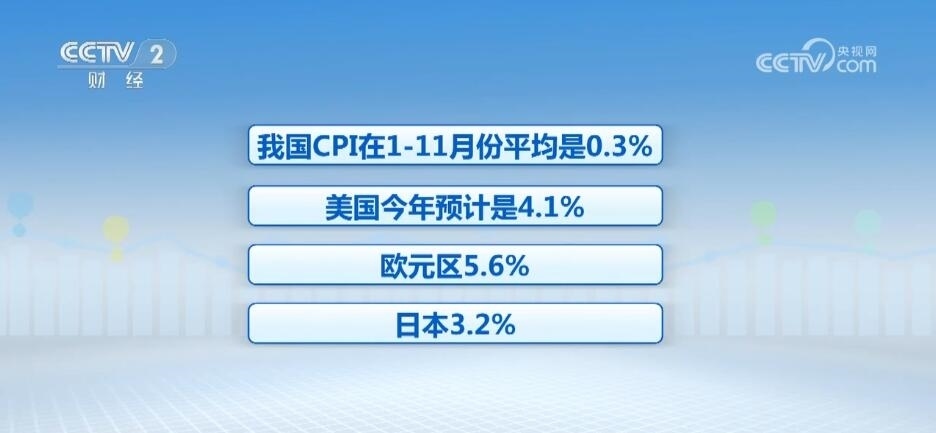 寧吉喆表示,消費(fèi)物價(jià)上漲率,也就是通脹率,我國(guó)CPI在1—11月份平均是0.3%,美國(guó)今年預(yù)計(jì)是4.1%,歐元區(qū)5.6%,日本3.2%。