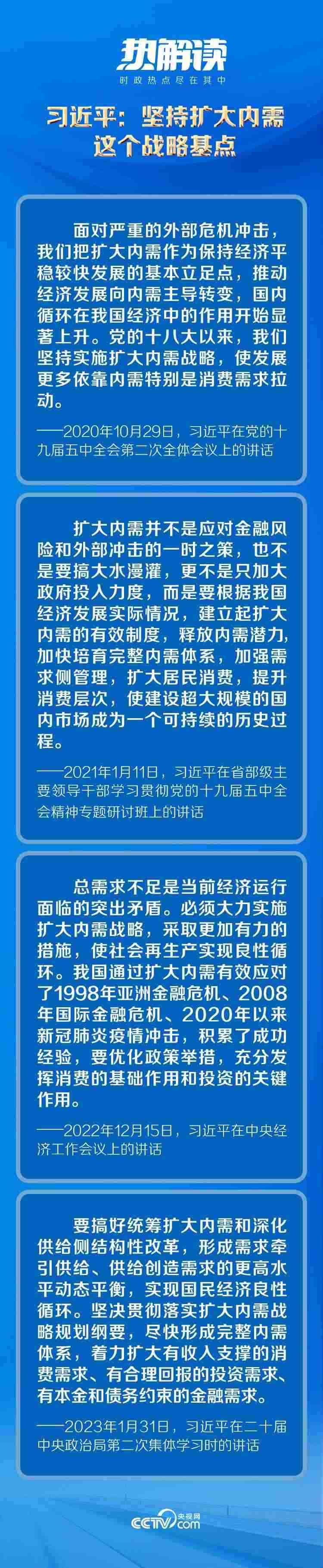黨的十八大以來(lái),習(xí)近平總書(shū)記從我國(guó)經(jīng)濟(jì)運(yùn)行的實(shí)際出發(fā),對(duì)擴(kuò)大內(nèi)需作出了一系列重要論述,為實(shí)施擴(kuò)大內(nèi)需戰(zhàn)略提供了科學(xué)指引。