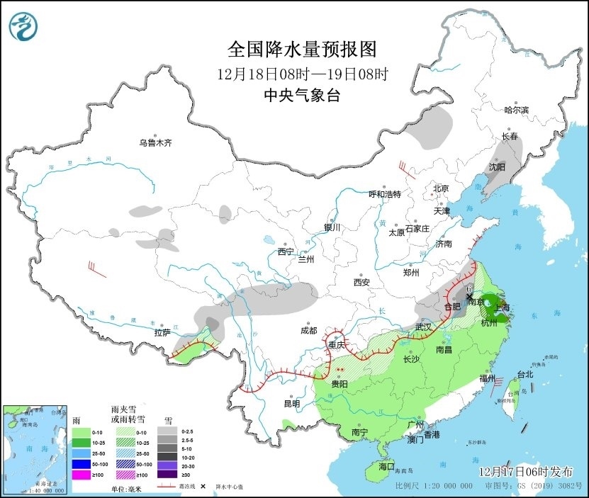 預(yù)計(jì),17日夜間至19日,南方大部地區(qū)有雨雪天氣,江淮地區(qū)將有雨夾雪或雪,江南、華南等地將有小雨,局地中雨。17日至18日,貴州中北部和東部、湖南西部和南部等高海拔地區(qū)有凍雨,其中夜間至凌晨時(shí)段凍雨范圍較大。未來我國大部低溫持續(xù)偏低,受雨雪天氣疊加影響,外出請(qǐng)注意路面濕滑和交通安全。