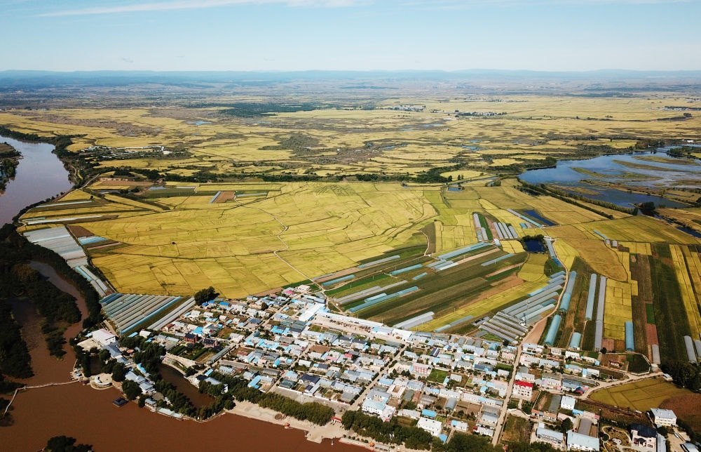 這是2023年9月13日拍攝的黑龍江省寧安市渤海鎮(zhèn)小朱家村附近的稻田(無人機(jī)照片)。新華社記者 王建威 攝
