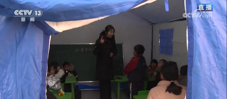 此外,在今天,積石山縣的高中實現(xiàn)了線上復課。不同地區(qū)的學生在有條件的情況下,可以在手機上上課。震后的第一堂課是安全主題課,普及一些地震安全避險和震后心理調(diào)適知識。很多救援力量也在給學生們的復課提供wifi信號等網(wǎng)絡保障,最大限度保證學生們能夠順利復課。