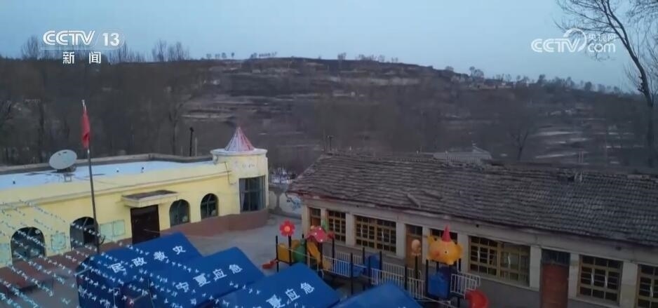 總臺記者 馬麗:我現(xiàn)在是在積石山縣前嶺小學附屬幼兒園。目前,這里也是前嶺村的一個集中安置點。地震發(fā)生后,這里的主體校舍沒有明顯受損,并且校內(nèi)廣場有大面積的空地,所以被作為了臨時安置點,來安置附近的40余名村民。其中,有近30名是小學生和幼兒園的小朋友。他們有些是村民自己的孩子,有些是附近親戚家的孩子??紤]到這里的環(huán)境更加穩(wěn)定和保暖,孩子們也被聚集到了這里?,F(xiàn)在,正是早起的時間,在安置點也升起了裊裊炊煙,陽光從遠處照了過來。
