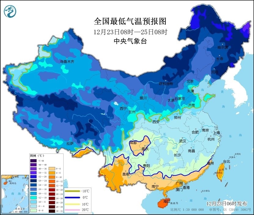 中央氣象臺(tái)12月23日06時(shí)發(fā)布低溫藍(lán)色預(yù)警