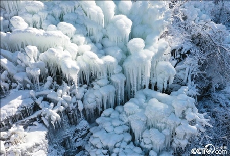 山東棗莊,受強(qiáng)冷空氣影響,山崖上出現(xiàn)晶瑩剔透的冰掛景觀。