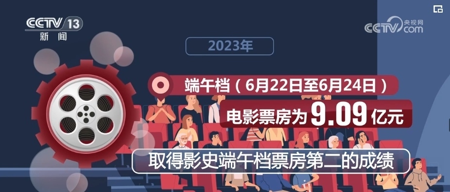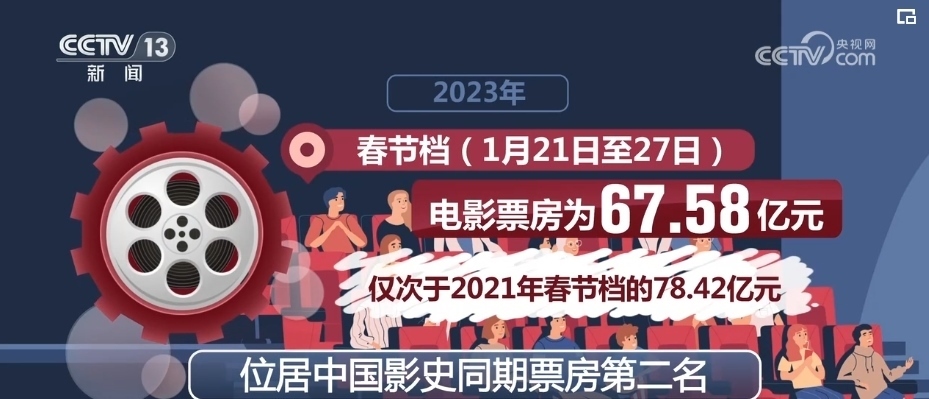 2023年春節(jié)檔(1月21日至27日)電影票房為67.58億元,僅次于2021年春節(jié)檔的78.42億元,位居中國影史同期票房第二名。端午檔(6月22日至6月24日)電影票房為9.09億元,取得了影史端午檔票房第二的成績。暑期檔(6月1日—8月31日)票房206.19億元,創(chuàng)中國影史暑期檔票房新高。